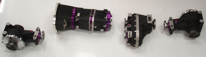 We produce our own range of 6 speed sequential in-line and transverse gearboxes – magnesium case transfer case with centre differential and an 8” spiral bevel differential for use on both front and rear of vehicles.